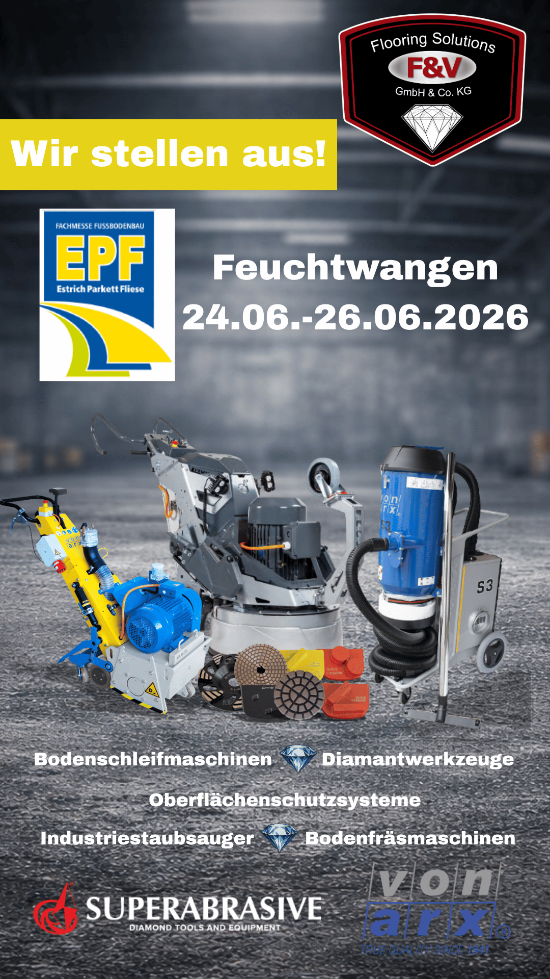 F&V ist spezialisiert auf Produkte und Lösungen für den professionellen Bodenschleifer und Bodenleger. Im Zentrum unseres Angebotes finden Sie leistungsfähige Bodenschleifmaschinen und Diamantwerkzeuge. Anfang 2006 haben wir auf dem deutschen und österreichischen Bodenschleif-Markt unsere ersten Schritte gemacht. Damals waren wir verantwortlich für den Aufbau der neugegründeten deutschen Tochtergesellschaft eines Skandinavischen Herstellers von Bodenschleifmaschinen. Acht Jahre später haben wir es gewagt uns selbständig zu machen, um unsere Ideen und Kompetenzen bekannten, und neuen Kunden anzubieten. Es war uns schon sehr früh klar, dass der anspruchsvolle Kunde mehr als eine Maschine und dazu passende Werkzeuge braucht. Eine gute Beratung und Unterstützung vor Ort ist genau so wichtig wie eine breite Palette von Produkten. Überhaupt sprechen wir lieber von Lösungen anstatt von Produkten, sowie von Systemen mit z.B. richtigen Oberflächenschutz oder Terrazzo-Materialien. Dank unserer Lieferanten und Partner in unserem breiten Netzwerk, können wir stets auf Ihre Wünsche und Anforderungen reagieren;